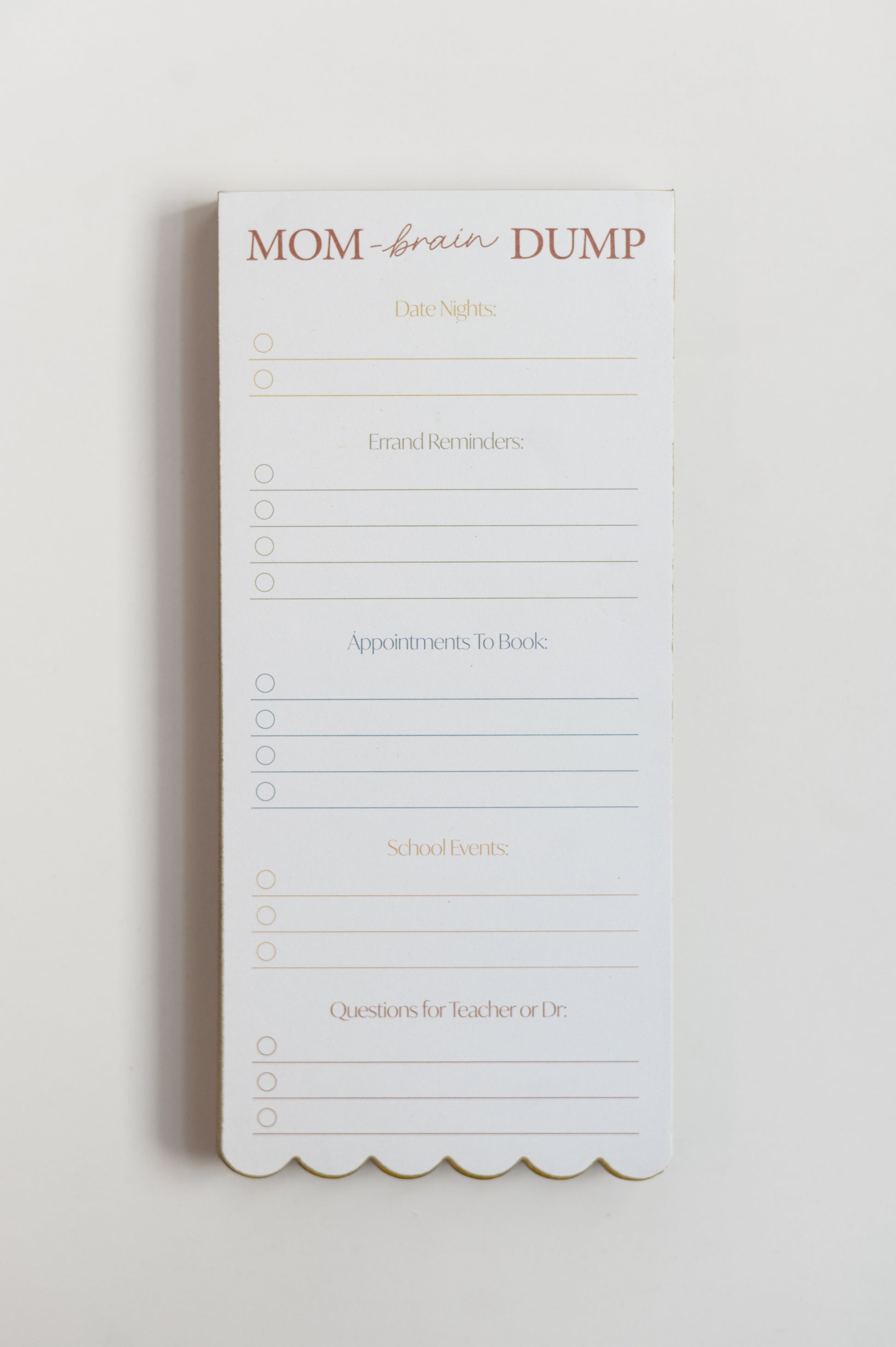 -Mom Brain Dump: Keep track of upcoming date nights, errands to run, appointments to book, school events & questions for teachers/doctors
